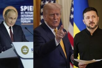 Vladimir Putin (left), Donald Trump, Volodymyr Zelenskyy (AP) US President Donald Trump…