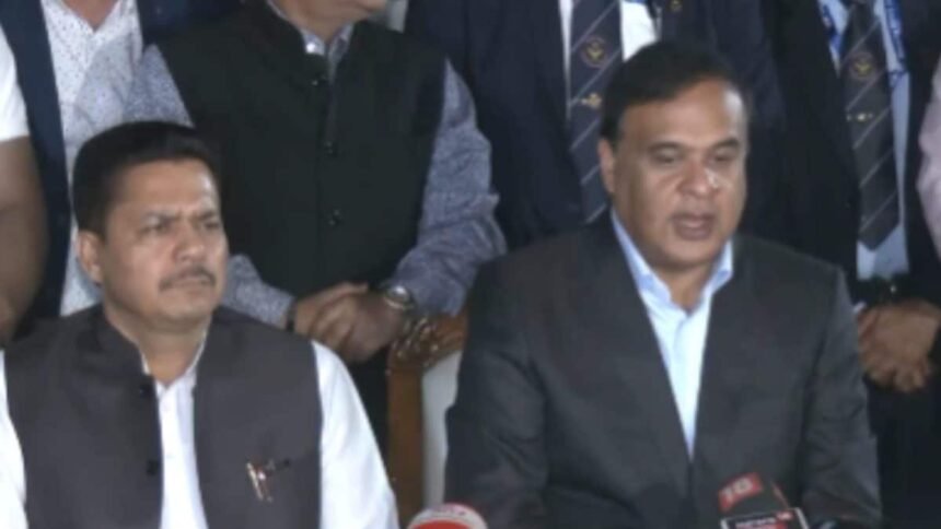 Assam CM Himanta Biswa Sarma with Bhupen Borah at a press conference on Tuesday. (ANI/X)