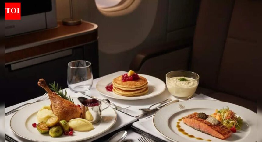 The holiday dining experience is meticulously tailored, offering separate menus for passengers flying