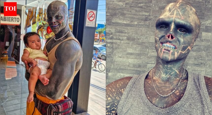 Anthony Loffredo is a 37-year-old French social-media figure known globally for extreme body modification. Before this path, he worked as a nightclub security guard and looked indistinguishable from anyone walking past you on the street. Short dark hair, brown eyes, unaltered features. Today, almost every inch of his skin is tattooed in black ink. He removed his ears, his nostrils and even part of his nose. His teeth are sharpened and tinted purple. His tongue has been split down the middle, forked like a snake’s. Subdermal implants along his skull and arms create raised ridges across his skin. He has amputated two fingers, leaving a claw-like silhouette to his hand. His Instagram page, Black Alien Project, serves as both documentation and personal commentary. He occasionally posts comparison photos of himself in his twenties versus now, the contrast is almost unrecognisable. In one caption, he wrote:“Men used to call me crazy; but science has not yet taught us whether madness is or not the sublime of intelligence… if all that is deep does not come from a disease of thought.”He has also acknowledged that his appearance draws judgement. In a 2023 Channel 4 documentary, he said he is regularly confronted or stared at. The Frenchman described the difficulties he faces in everyday situations, even simple acts like sitting for a drink on a terrace or trying to call an Uber. Drivers sometimes refuse to stop for him. He says he is denied entry into certain restaurants and faces major obstacles when trying to find work, as many employers will not hire him based on his appearance alone.