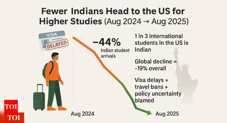 The number of Indian students travelling to the United States has fallen sharply this year, marking the steepest decline on record outside the pandemic. According to new Trade.gov data analysed by The New York Times, student arrivals from India dropped by 44 percent in August 2025 compared with the same period last year. For a country that now sends nearly one in three foreign students to American universities, this represents a major shift in global education flows.