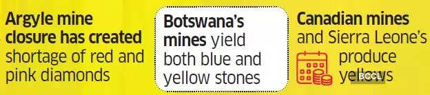 A July report by the Natural Diamond Council (NDC) said the estimated wholesale value of fancy colour diamonds entering the market in 2024 exceeded $4.5 billion, citing data from the Israel-based Fancy Colour Research Foundation (FCRF). Industry executives estimate that coloured diamonds account for less than 1% of global diamond output, with only a handful of mines producing them – that too in small quantities.