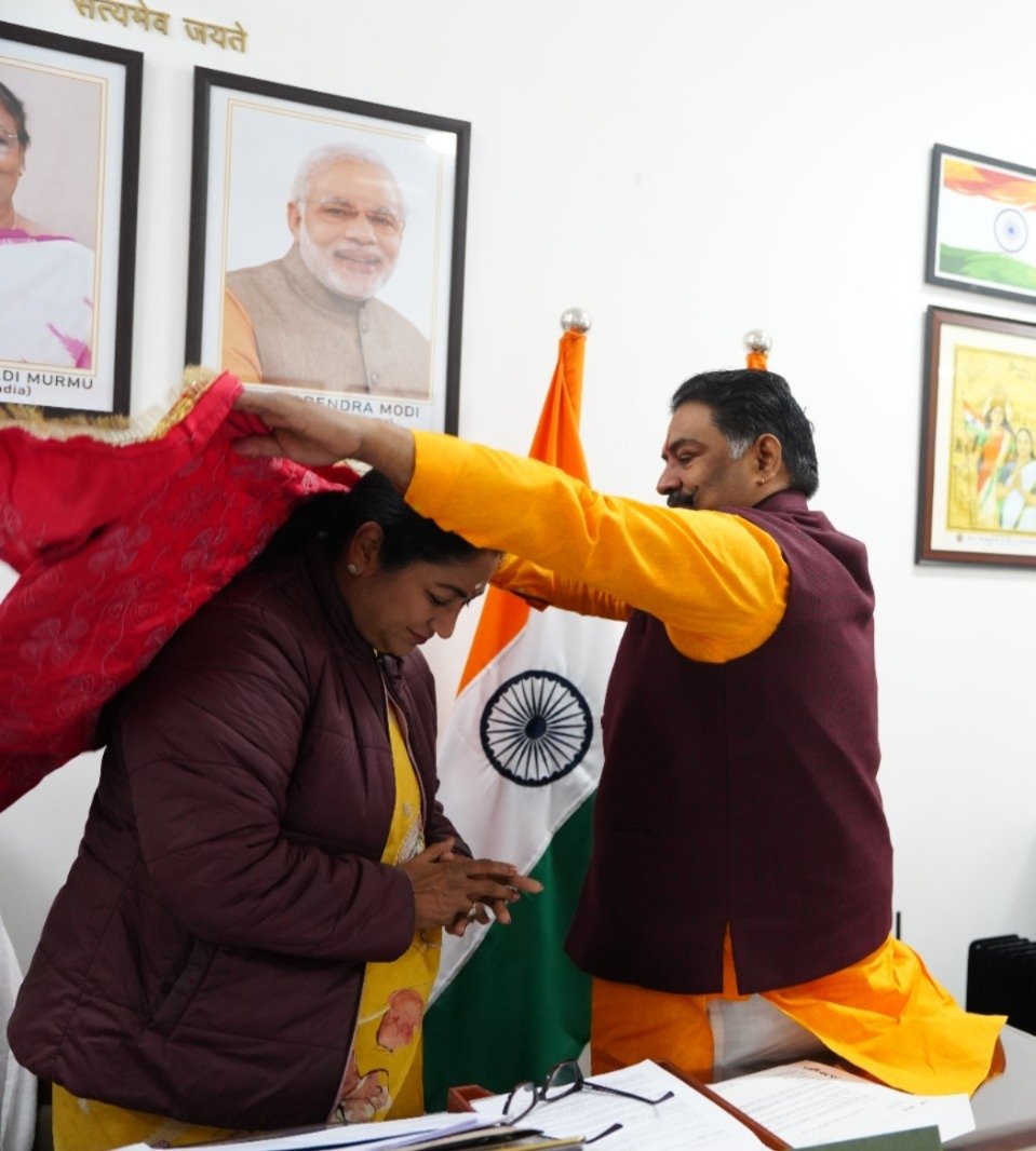 दिल्ली के प्रसिद्ध मरघट वाले हनुमान मंदिर के महंत वरुण शर्मा ने आज दिल्ली की मुख्यमंत्री रेखा गुप्ता से शिष्टाचार भेंट की। यह मुलाकात सौहार्दपूर्ण वातावरण में सम्पन्न हुई, जिसमें धार्मिक, सामाजिक और सांस्कृतिक विषयों पर विस्तार से चर्चा की गई। महंत वरुण शर्मा ने मुख्यमंत्री को मंदिर की ऐतिहासिक परंपरा, वर्तमान व्यवस्थाओं और श्रद्धालुओं की सुविधाओं से जुड़े महत्वपूर्ण पहलुओं की जानकारी दी।