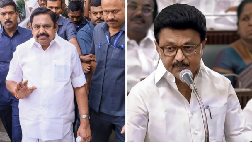 Palaniswami stated that while Chief Minister M K Stalin was “patting his own back and boasting” in the state Legislative Assembly, “some mysterious people hurled country-made bombs at a police vehicle near the Perambalur toll plaza”.