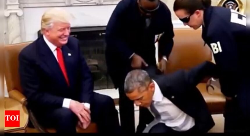 In another jibe at the Democrats, Donald Trump on Sunday shared an AI-generated video that shows former US President Barack Obama being arrested by FBI agents inside the Oval Office.Trump posted the video on his Truth Social platform and it quickly became viral. The video was created using deepfake technology, which shows a highly realistic scene where Obama is handcuffed and taken away by agents while Donald Trump looks on, smiling.The footage appears to have originated on TikTok and was later reshared by Trump without any direct commentary. The clip is captioned with the phrase: “No one is above the law.”In the beginning of the video, various prominent Democratic leaders, including former US President Joe Biden, say, “No one is above the law.” A clown version of the Pepe the Frog meme then appears on screen, honking its red nose, seemingly mocking their statements.In the next segment, the video shows Obama being handcuffed, and later, he appears behind bars wearing an orange prison jumpsuit. The video sparked strong reactions on social media. Trump’s supporters on Truth Social celebrated the post, while critics condemned it as misleading and provocative.The internet went buzzing with reactions. “Anything to distract from the Epstein files…,” said X handle Republicans against Trump.Others like user Publius asked: “Will Obama be arrested?”Political commentator Nick Sortor said, “make this a reality.”MAGA Voice reshared the video and said, “I absolutely voted for this.”This mocking video of Obama comes at the same time as serious claims made by Tulsi Gabbard, the director of national intelligence (DNI).On Friday, Gabbard said she has “striking” and “overwhelming” proof that some of Obama’s top officials made up the Trump-Russia collusion story after the 2016 election. She said it was done to try and stop Trump from becoming president.Gabbard also said she plans to give the secret documents to the department of justice and the FBI so they can take action against Obama. So far, Obama and his former team have not responded to these claims.“The implications of this are frankly nothing short of historic,” Gabbard said Sunday on Fox News’ Sunday Morning Futures.“Over 100 documents that we released on Friday really detail and provide evidence of how this treasonous conspiracy was directed by President Obama just weeks before he was due to leave office after President Trump had already gotten elected.”